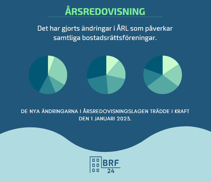 Den 1 januari 2023 trädde nya ändringar i årsredovisningslagen (1995:1554) (ÅRL) i kraft som påverkar bostadsrättsföreningar. Årsredovisningar 2023-12-31 och senare omfattas av de nya reglerna. Samtliga bostadsrättsföreningar måste tillämpa ÅRL.